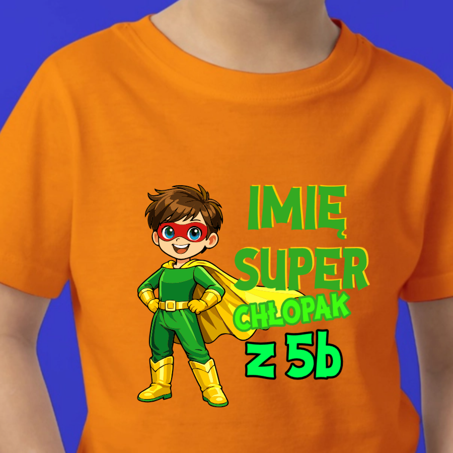 Koszulka z imieniem i klasą dowolny tekst. Fajna koszulka na prezent dla chłopców w szkole